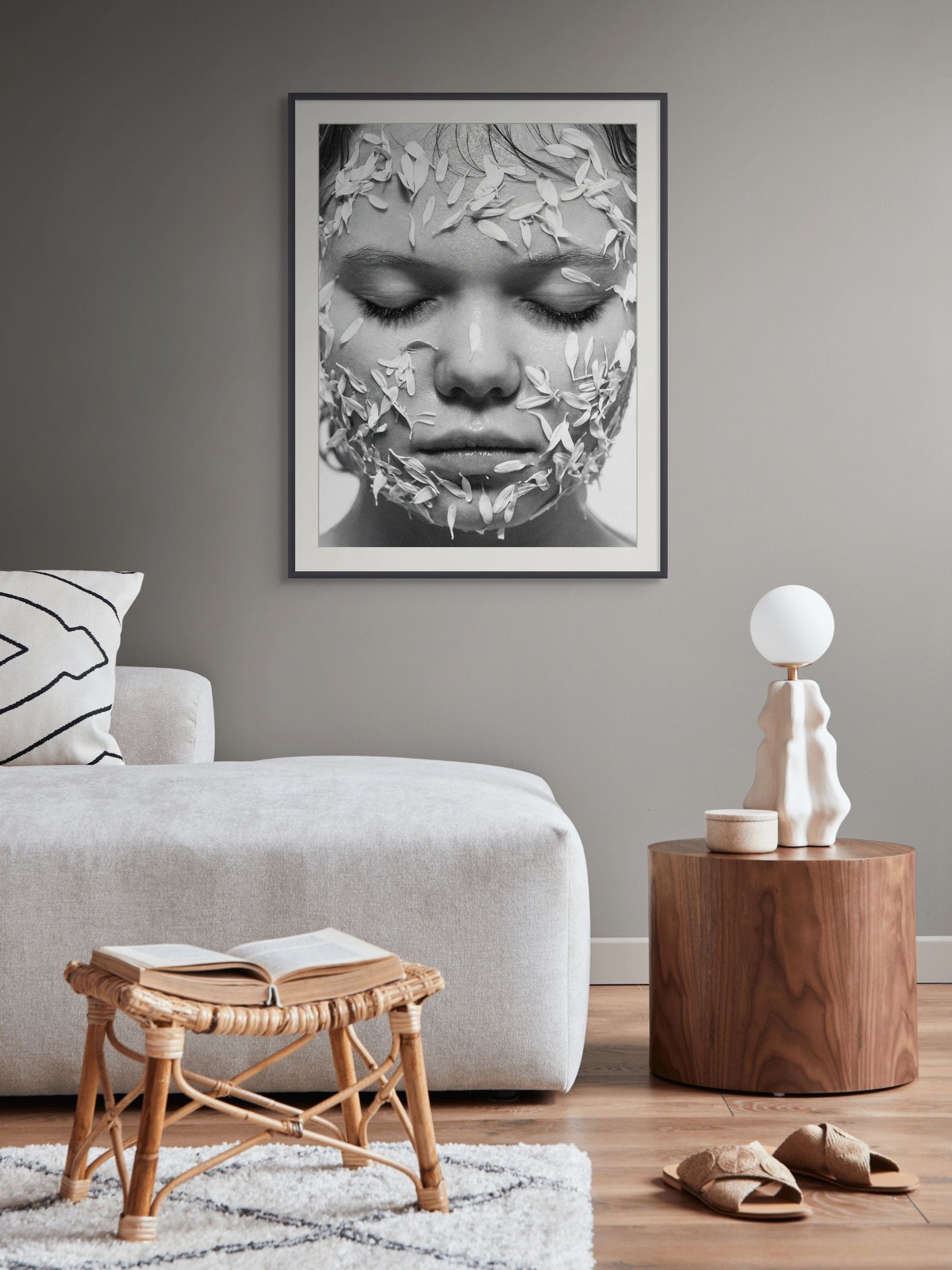 Blooming Flower captures the delicate intersection of humanity and nature. A serene face, eyes closed in quiet reflection, is adorned with scattered petals that evoke both fragility and transformation. The black-and-white composition emphasizes texture and emotion, stripping the image down to purity and contrast. At 40 x 30 inches, its scale amplifies intimacy into monumentality, inviting viewers to contemplate cycles of growth, vulnerability, and renewal. Printed with archival quality as a limited edition, each signed print offers collectors a rare statement piece that merges natural beauty with the artistry of human expression.