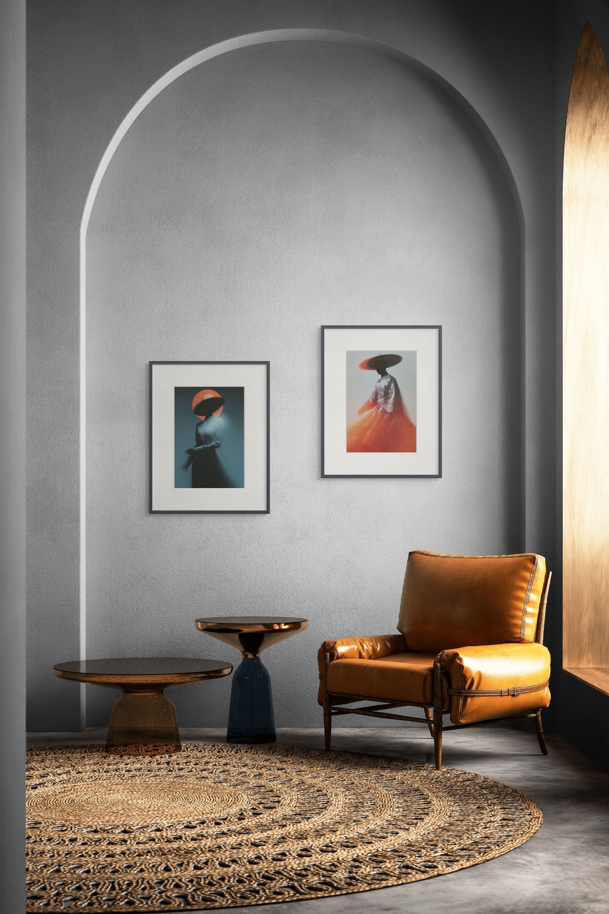 Spin 02 presents a spectral silhouette draped in flowing textures, its faceless form crowned by a radiant, halo-like disc of red. The figure hovers between shadow and illumination, evoking mystery, ritual, and transformation. The interplay of light and fabric suggests both concealment and revelation, as if identity itself is caught in a perpetual dance of becoming. At 18 x 12 inches, this signed limited edition invites collectors to step into an atmosphere where elegance and enigma entwine, blurring the boundaries of presence and absence.